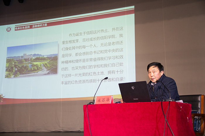施昌海作了《传承红色基因、汲取榜样力量》的专题辅导报告。他结合方志敏、江竹筠、吴焕先等革命先烈及邓稼先、张玉滚和李芳等时代英模的感人事迹,从“革命先烈的鲜血铸就了红色基因”“时代英模的奉献彰显了榜样力量”和“红色基因与榜样力量集中体现了哪些精神”三个方面,对红色基因和榜样力量进行了深刻阐述。
