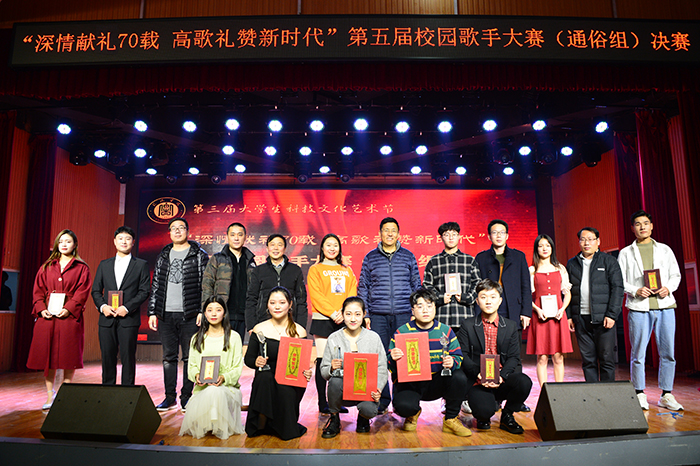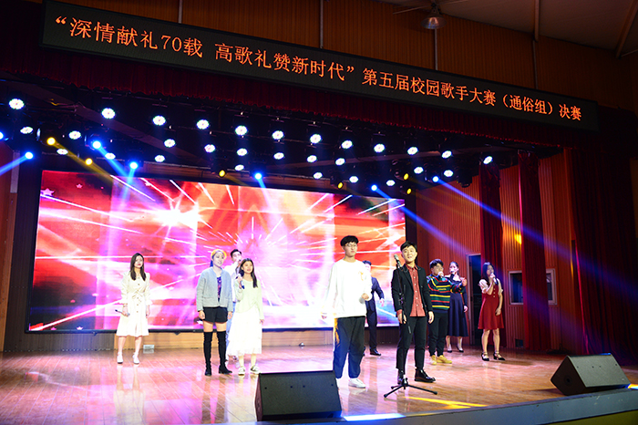 深情献礼70载、高歌礼赞新时代。为深入学习贯彻习近平新时代中国特色社会主义思想和党的十九大精神,引导广大青年学生德智体美劳全面发展,12月5日晚,由校团委主办,大学生艺术团承办的第五届校园歌手大赛(通俗组)决赛在大学生活动中心举行。校党委专职副书记施昌海,工会主席傅洪涛出席比赛活动。有关学院党总支书记李赟、李静、胡志国,各学院团总支书记和500余名师生共同观看了比赛。