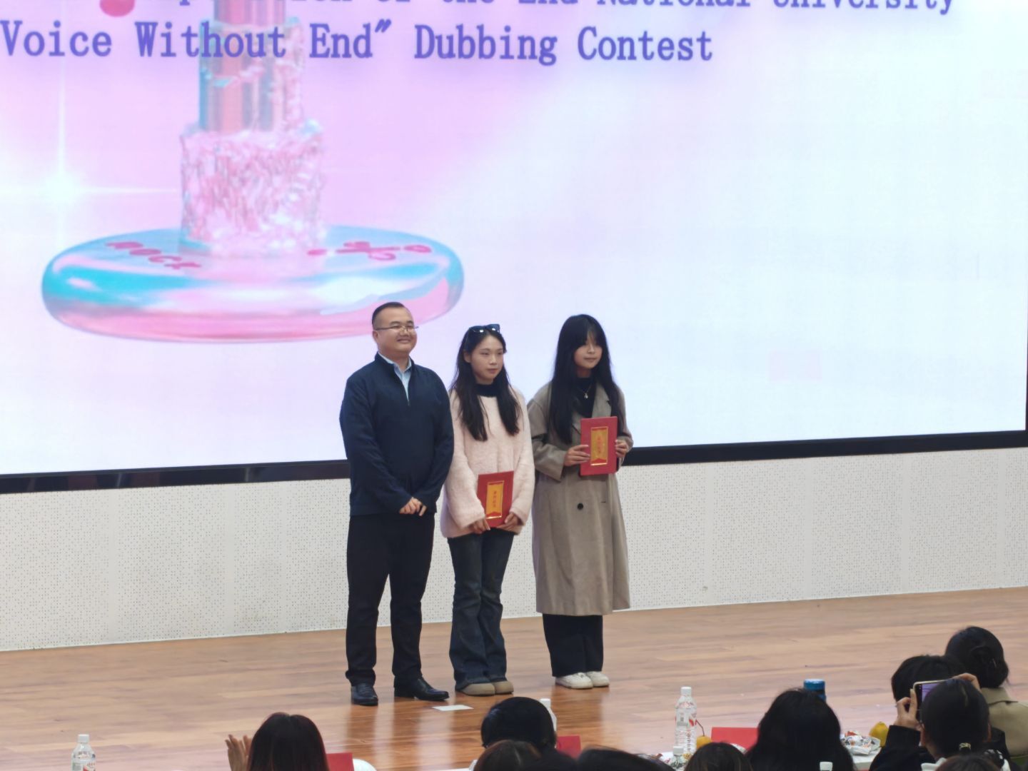 经过层层选拔,最终成功进入选拔赛的选手一共有七组。决赛共分才艺展示环节和配音环节。选手们先后通过歌舞等才艺形式让现场气氛逐渐热烈起来;又以流利的口语、真挚的情感和声情并茂的表演,给现场的观众带来了一场视听盛宴。最终大赛决出一等奖1组、二等奖2组、三等奖4组。令人印象深刻的是周子程小组带来的《美人鱼历险记》,作为一等奖的获得组,她们的才艺表演是歌舞,精彩的表演惊艳了全场,配音部分更是抓住了人物的特点与音色,整个配音片段活灵活现,让人身临其境,全场气氛达到最高潮。