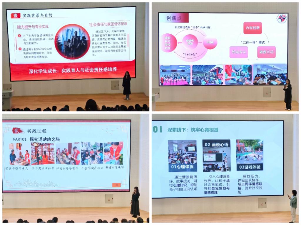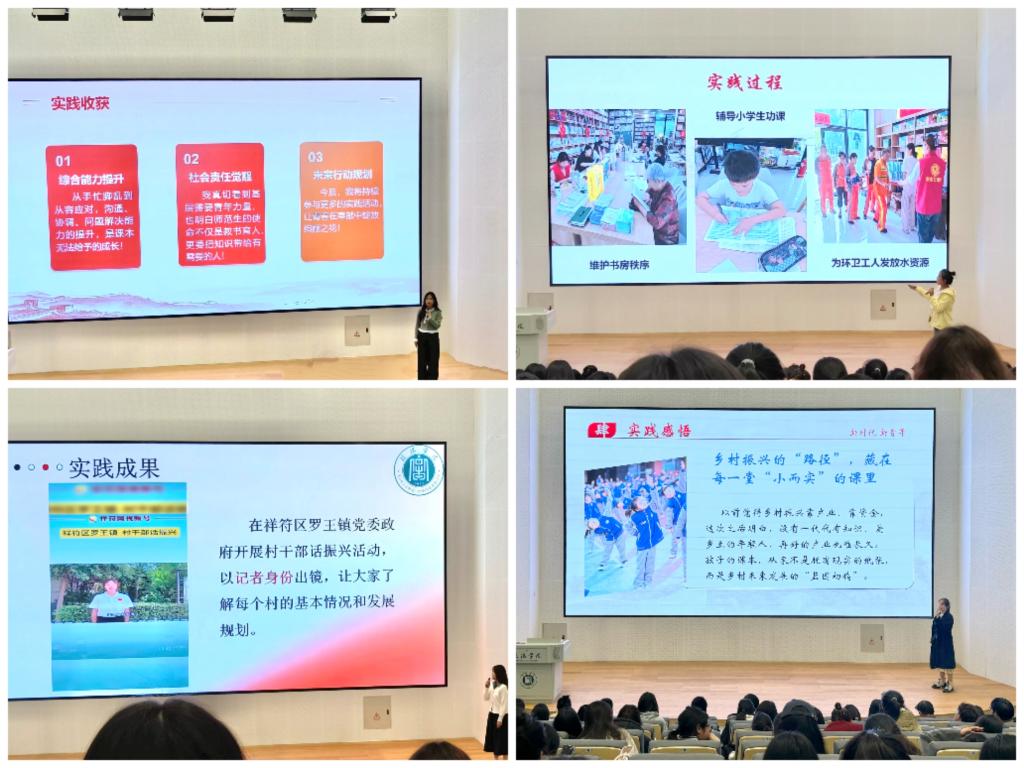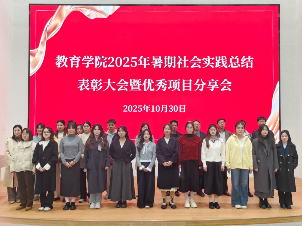实践筑梦启新程,青春建功谱华章。10月30日,教育学院2025年大学生暑期社会实践总结表彰大会暨优秀项目分享会在南湖校区教三楼005报告厅顺利召开。心理学专业教研室主任杨立昊老师、小学教育专业教研室主任刘海龙老师、学生工作办公室全体辅导员老师、受表彰的集体和个人及通过二课“到梦空间”报名来到现场的同学们共计300余名师生齐聚一堂,共同复盘实践成果,共话育人新篇。