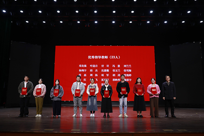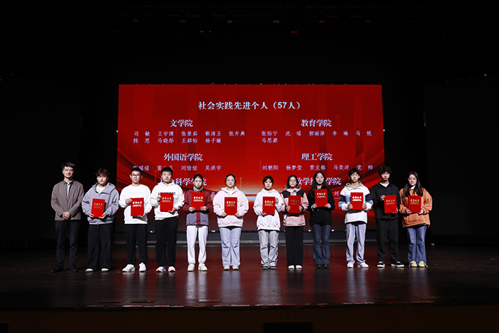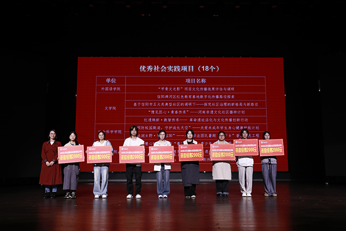 荣获“优秀组织单位”的是教育学院、美术与设计学院和与数学与统计学院,它们在“团队组建总数、校级重点项目结项数、个人实践参与率”三项核心指标上表现突出,成果显著。在个人与团队方面,23位教师获评“优秀指导教师”;18个校级重点团队项目顺利结项,被授予“优秀社会实践项目”;57名在豫籍大学生“返家乡”、河南共青团“向基层报到”等活动中表现突出的学生,荣获“社会实践先进个人”称号。校领导依次为受表彰的集体与个人颁奖,现场气氛热烈,掌声不断。