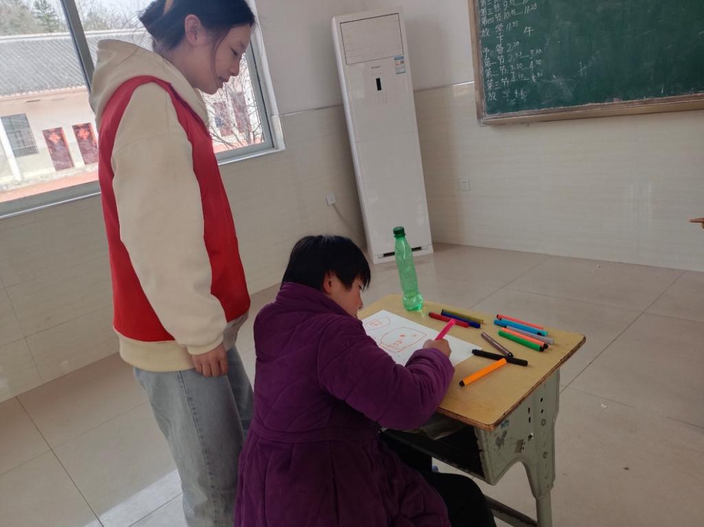 志愿者们用丰富多彩的形式为同学们进行授课。美术课上,志愿者在黑板上绘出有趣的形状和小动物,学生们参与其中,同学们愉快认真并向老师展示自己的作品,绘画实践和游戏互动相辅相成。在志愿者的引领下,学生们积极踊跃,课堂上欢声笑语,故事分享环节让学生们了解许多知识和有趣的故事,极大的激发了学生的积极性。体育课上,学生们认认真真进行热身运动,学习老师打篮球的基本动作,“一二三木头人”等游戏形式多样、生动有趣。