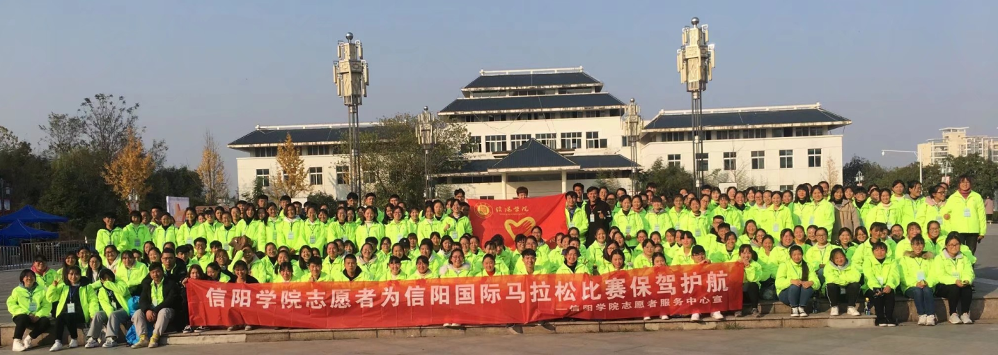 韵动中国·2018年信阳国际马拉松赛来临之际,校团委大力支持和配合本届赛事的志愿者招募工作,对全校各志愿服务团体进行广泛动员,共遴选出了400余名优秀的学生志愿者参与其中,通过前期对赛事的学习培训、路线现场勘察等,为本次国际赛事的顺利进行做出了充分的准备。