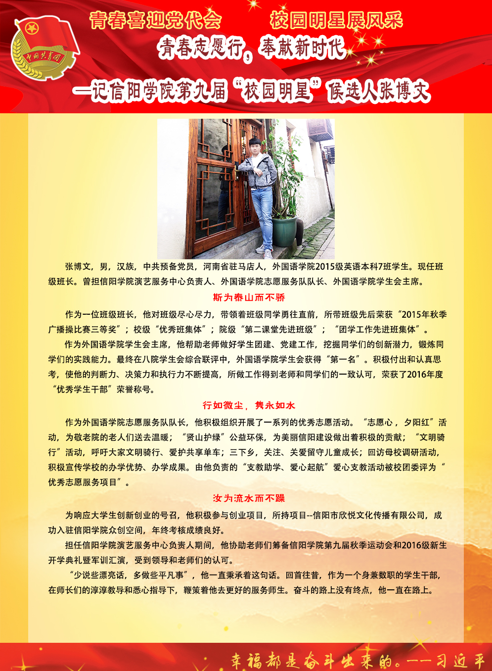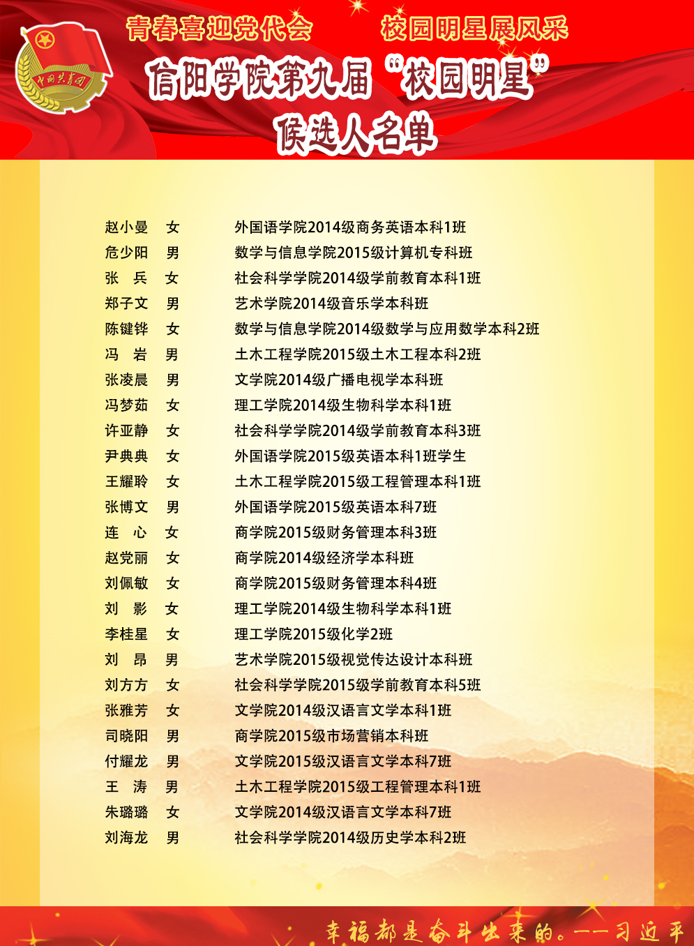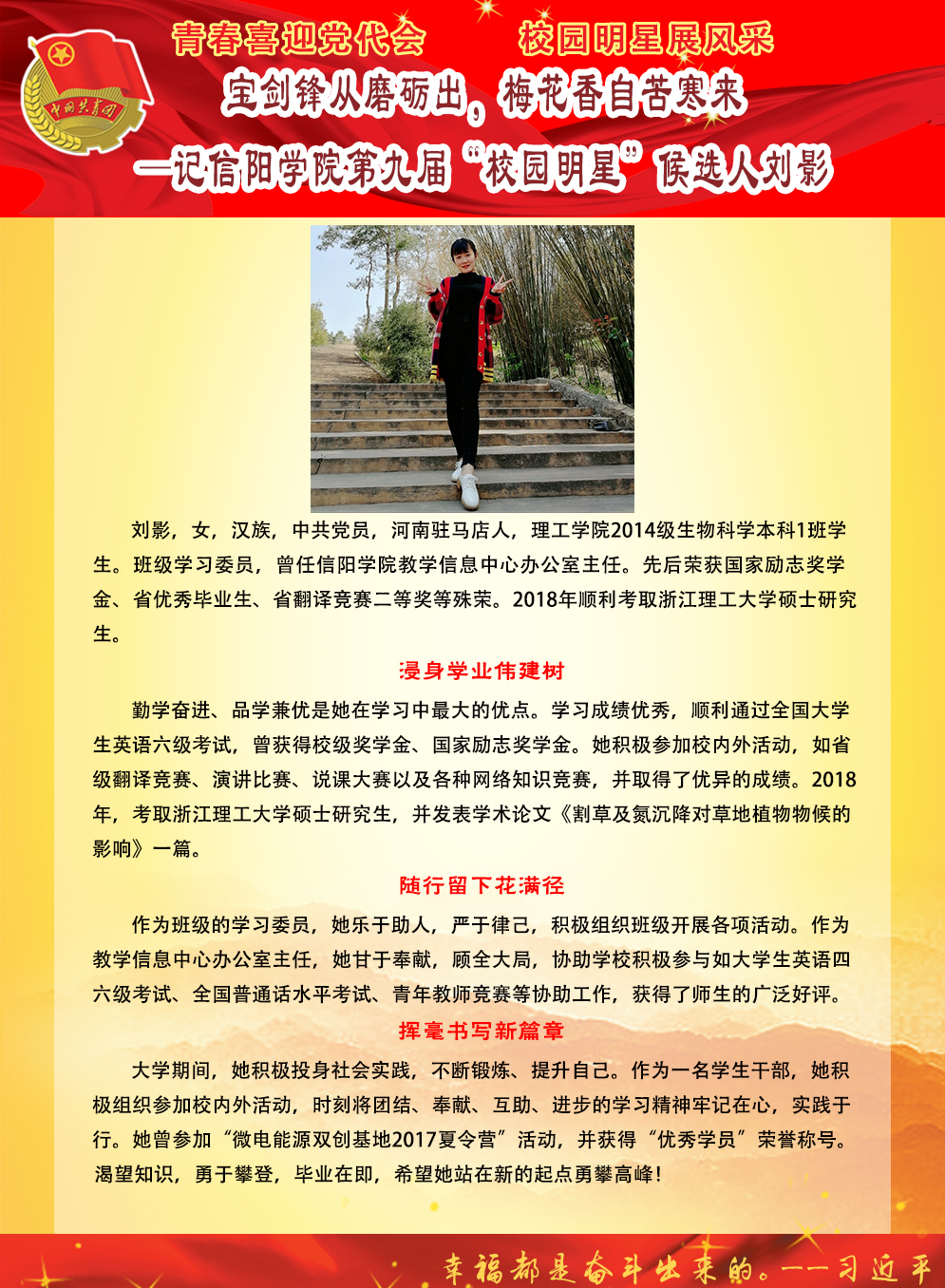 【喜迎党代会】信阳学院第九届“校园明星”候选人事迹展示