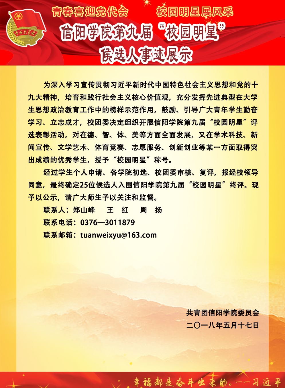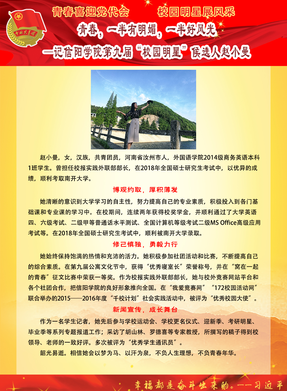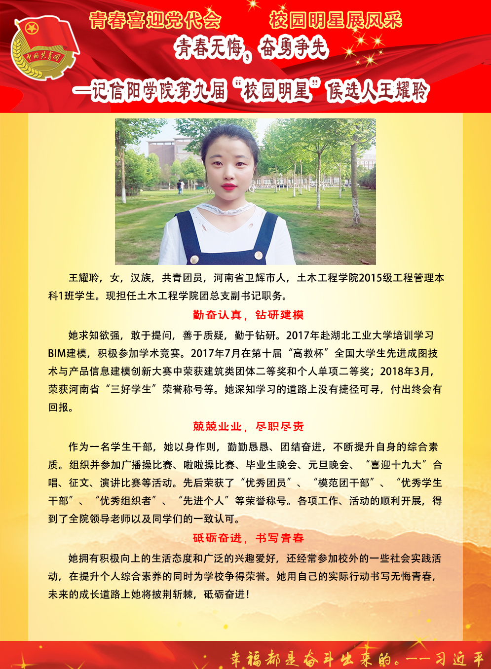 【喜迎党代会】信阳学院第九届“校园明星”候选人事迹展示