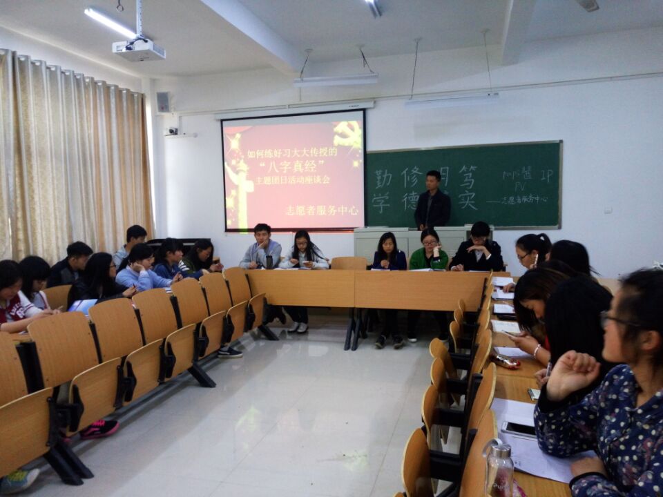 为深入学习习近平总书记系列讲话精神,认真领会“勤学、修德、明辨、笃实”八字真经的深刻内涵,3月28日,院团委组织学生干部在人文楼414教室,开展了“如何练好习大大传授的‘八字真经’”学生干部大讨论活动。