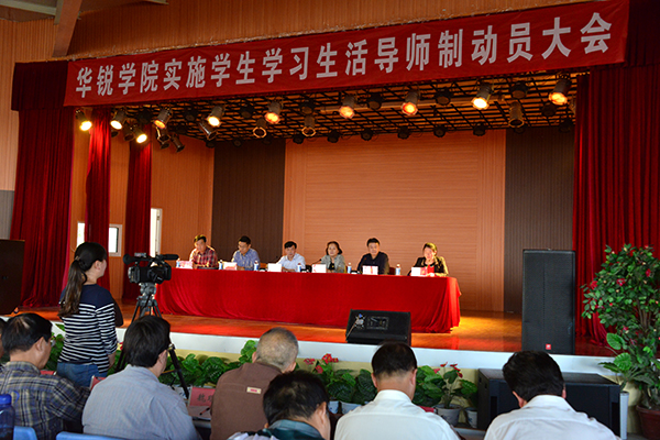 10月14日下午,学院实施学生学习生活导师制动员大会在大学生活动中心隆重召开。院长施昌海,党委书记张莉,副院长傅洪涛、王志华、毛海涛出席大会,各系、各部门负责人及学院全体学生学习生活导师参加了会议。会议由王志华主持。