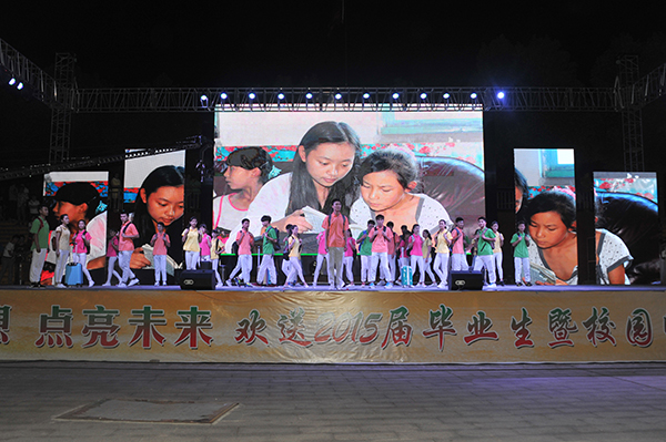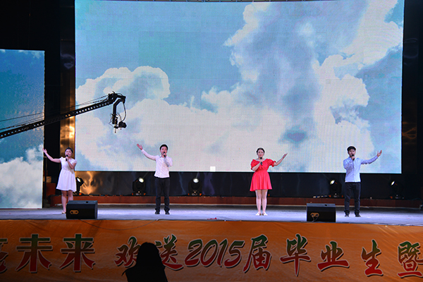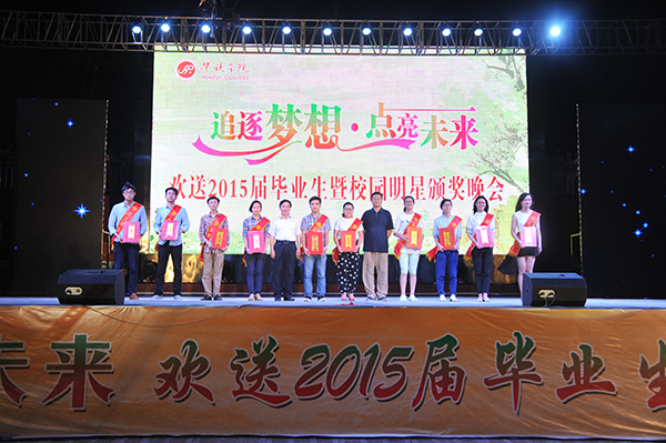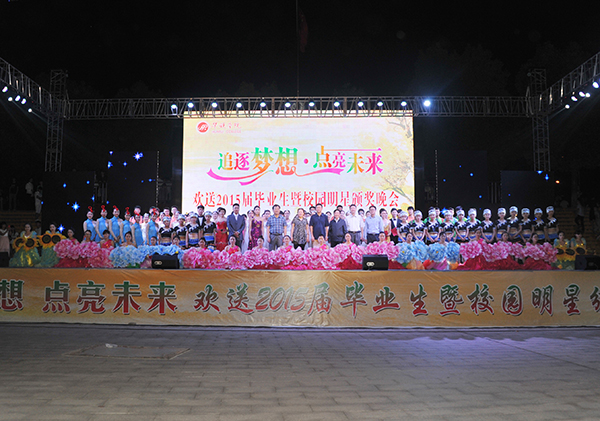 浓浓华锐谊,深深师生情。6月5日晚,我院“追逐梦想 点亮未来”欢送2015届毕业生暨“校园明星”颁奖晚会在体育场隆重举行。董事长高峰,院长施昌海,党委书记张莉,常务副院长高云,副院长王志华、毛海涛,院长助理杨高伟等领导出席。各系部负责人、专家教授、数千名师生陪同本届毕业生一起观看了晚会。