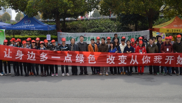随后,领导和师生们共同在“让身边多一点绿色,改变从你我开始”的宣传条幅上签名承诺。