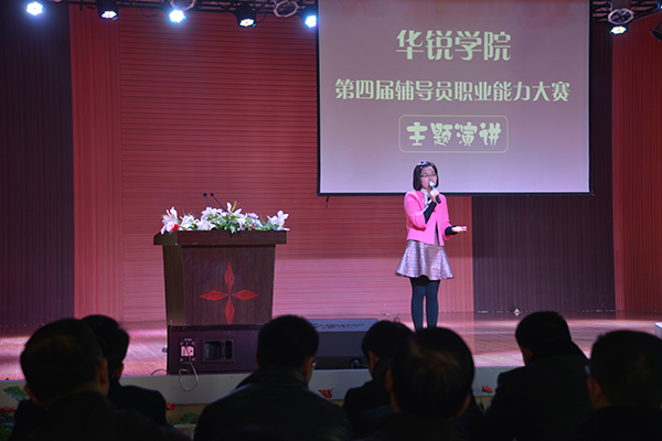决赛阶段即为主题演讲,选手们分为命题演讲和即兴演讲两个阶段进行。在命题演讲中,他们以“如何成为一名优秀的辅导员”为主题,分别以“做好职业规划,塑造精彩人生”、“当代大学生形象”、“我是辅导员”、“胸怀大爱做小事”等命题作了精彩的演讲。同时,他们结合自己的教学经历,以讲故事的形式讲述自己的辅导员经历,赢得了现场观众的阵阵掌声与喝彩。在即兴演讲中,各参赛辅导员现场抽取命题进行演讲,着重考察辅导员的知识广度、思想深度和场上应变能力。经过现场的激烈角逐,综合笔试、谈心谈话、案例分析、主题班会等环节成绩,最后评选出外语系王娜荣获一等奖;中文系李春云、社会科学系徐晓琰、经济管理系程娇炎荣获二等奖;艺术系李海丽、外语系李蓓蓓、艺术系梁晓梅、经济管理系盛士蔚、理工系李伟荣获三等奖。