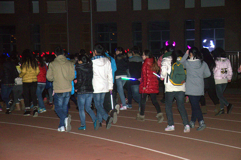 炫彩荧光夜跑,耀动活力青春。12月5日晚,由院团委主办、院学生会承办的“三走”系列活动之“荧光夜跑”在田径场拉开帷幕,近600名学生参与该活动。