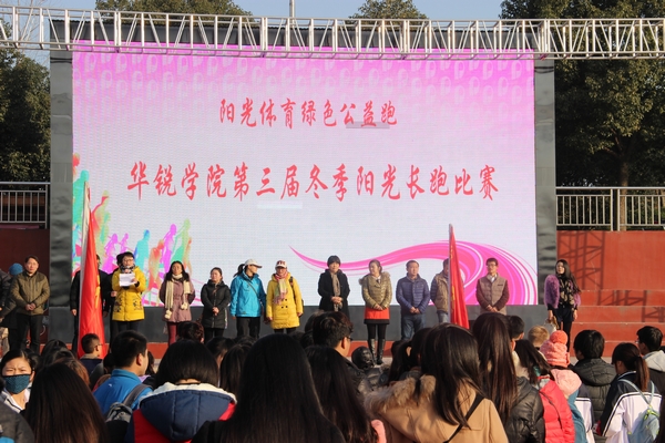 为深入落实教育部《关于开展第八届全国亿万学生阳光体育冬季长跑活动的通知》精神和省教育厅的相关要求,进一步推进全民健身活动的开展,提升学生健康素质,12月13日,由院团委和实践教学中心联合举办的以“阳光体育,绿色公益跑”为主题的第三届冬季阳光长跑比赛起跑仪式在田径场举行。院党委书记张莉、团委副书记胡秀云、实践教学中心和各系部分老师及600余名运动员和志愿者参与了本次活动。胡秀云主持起跑仪式。
