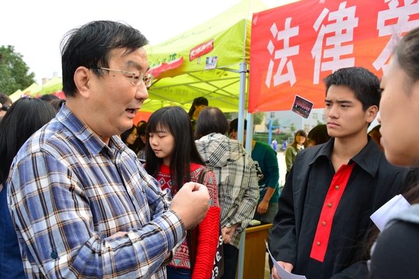 在招新现场,院领导亲切地与学生社团招新负责人进行交谈,详细询问了社团发展状况及活动开展情况,了解了社团今年的招新计划及工作进展。在了解有关情况后,张莉充分肯定了近年来学生社团发展所取得的成绩,指出大学生社团是我院校园文化建设的重要载体,是我院第二课堂的引领者,学院非常重视和支持学生社团的建设与发展。她要求广大社员在工作中自觉接受学校团委、各系社团指导教师的指导,自觉遵守法律法规以及学校各项规章制度,将奉献社会和提高自我结合起来,积累经验,提高素质。