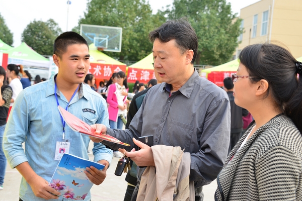 缤纷社团点亮校园,欢聚金秋追梦同行。10月12日至13日,我院各学生社团在团委、社团联合会的统一组织下,在篮球场开展了一年一度的招新工作。院党委书记张莉,副院长王志华、毛海涛,办公室副主任张富庄、学工部副部长张甲楠、团委副书记胡秀云及团委全体老师和社团指导教师到现场指导招新工作。