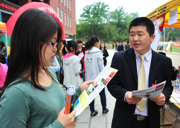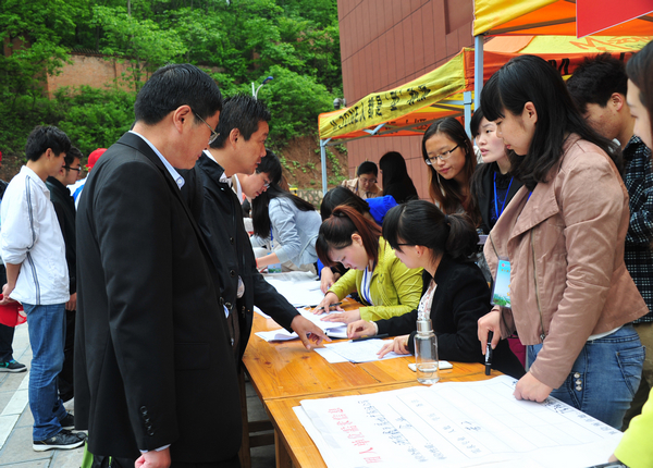 4月26日,我院2014届毕业生就业双选会在教四楼大学生就业教育招聘大厅举行。来自中国人寿、中国平安、华图教育、东方今报、河南地矿局地调三队、羚锐制药、北京联合智业、洛阳欧亚国际外国语学校等省内外100余家用人单位亮相校园、招贤纳士,提供就业岗位3000余个,涉及汉语言文学、数学与应用数学、英语、土木工程、市场营销、会计等26个专业。我院3000余名应届毕业生热情响应、积极参与,从中谋求心仪岗位。