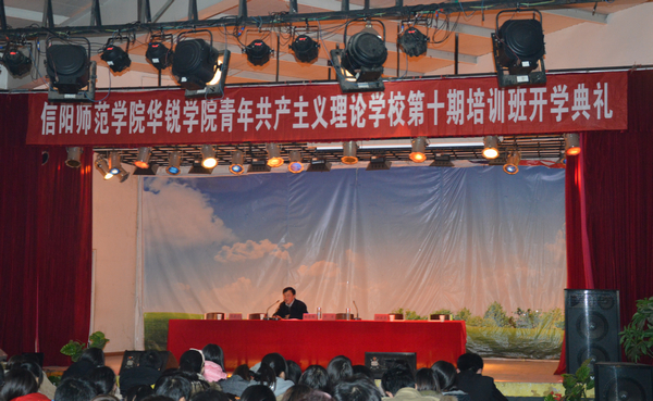 开班典礼在雄浑激昂的《国际歌》声中拉开了帷幕。团委通报了《信阳师范学院华锐学院青年共产主义理论学校第十期培训班学习计划》,并就参加人员、培训内容、日程安排、培训方式及学习要求等方面对培训班工作进行了部署。
