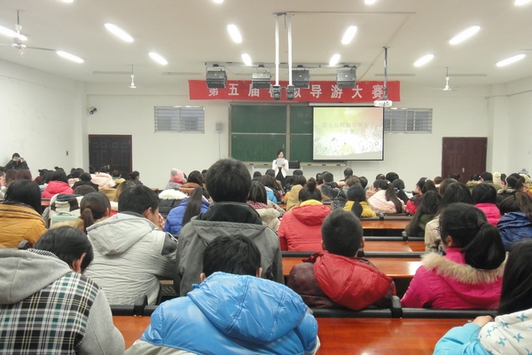 12月19日晚,我院第五届模拟导游大赛决赛在图书馆102教室举行。院办公室主任张柏平,督导督察室主任、教学部副部长于祥杰,社会科学系主任陈录生、副主任张甲楠,学工部部长助理、团委副书记张富庄与200多名师生共同观看了比赛。