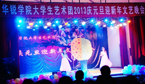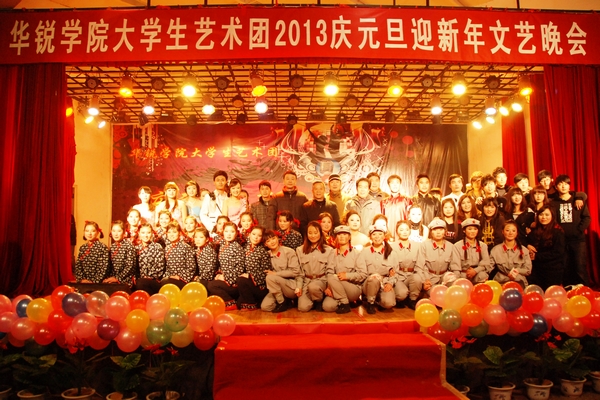 12月25日晚,我院大学生艺术团2013庆元旦迎新年专场文艺汇演在大学生活动中心隆重举行。院长郑定豪,副院长王志华,院办公室主任张柏平,督导督察室主任、教学部副部长于祥杰,中文系主任傅瑛,督导督察室副主任张富良,学工部部长助理、团委副书记张富庄等与广大师生共同观看了晚会。