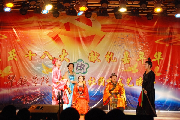 12月18日晚,我院“欢庆十八大、献礼嘉年华”暨第三届“社团情”文艺晚会在大学生活动中心隆重举行。副院长王志华,院办公室主任张柏平,督导督察室主任、教学部副部长于祥杰,中文系主任傅瑛,外语系主任罗德喜,社会科学系副主任张甲楠,学工部部长助理、团委副书记张富庄,院办公室主任助理李沛与广大师生观看了晚会。