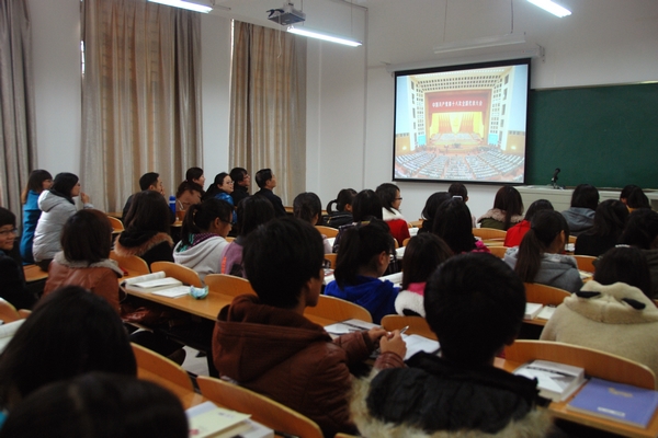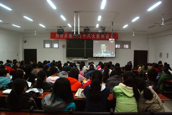 11月8日上午9时,举世瞩目的中国共产党第十八次全国代表大会在北京隆重举行,我院师生结合实际工作,采取在多媒体教室或办公室集中或自主等方式,收看了十八大开幕式直播盛况。在仔细聆听了胡锦涛总书记向大会所作的《坚定不移沿着中国特色社会主义道路前进 为全面建成小康社会而奋斗》的报告后,广大师生一致认为,报告内涵丰富,思想深刻,催人奋进,要认真学习会议精神,坚持以邓小平理论、“三个代表”重要思想、科学发展观为指导,进一步解放思想、实事求是、与时俱进,积极为实现我院又好又快发展贡献力量。