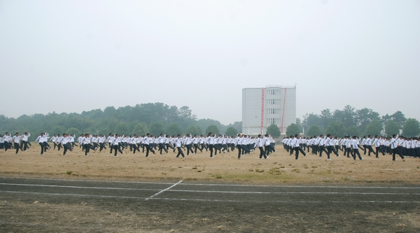 9月21日上午,我院2012级新生军训成果展示暨总结表彰大会在体育场隆重举行。解放军驻信阳71960部队首长曹书斌中校、李文会少校,我院院长郑定豪、常务副院长高云、副院长王志华,各职能部门、各系及承训部队首长共同观看了军训成果汇报展示。大会由副院长王志华主持。