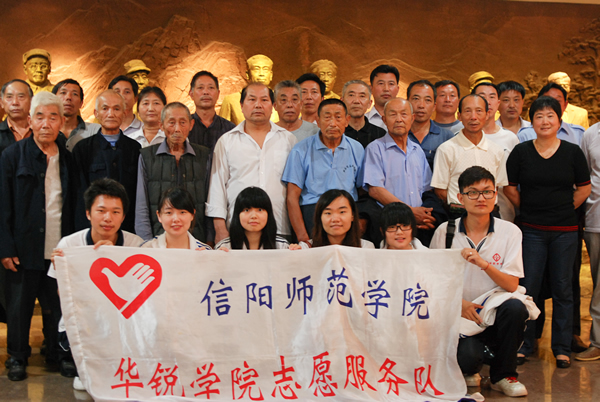 2012年6月28日,为响应华锐学院2012年暑期大学生“三下乡”社会实践活动的号召,围绕“高举团旗跟党走 建功中原经济区”这一主题,我院“迎接党的十八大,追寻红色足迹”社会实践团一行人先后来到信阳市鄂豫皖革命纪念馆和信阳市第一干休所,开展了社会实践活动。实践团队人员由我院学生会和社团联合部分学生干部代表组成。