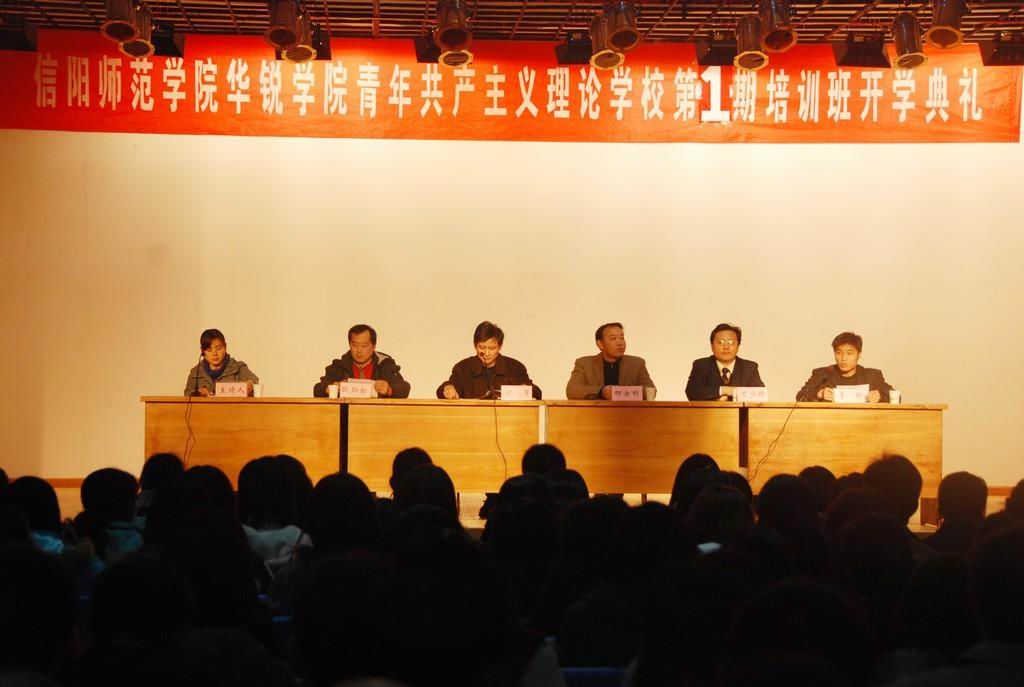 典礼中,李明宣读了《信阳师范学院华锐学院青年共产主义理论学校首期培训班学习计划》,布置了学习内容。按计划,本期培训班计划集中辅导讲座8次,录像2次,同时还将开展专题讨论、社会实践等活动,累计40学时,计划4月底结束。