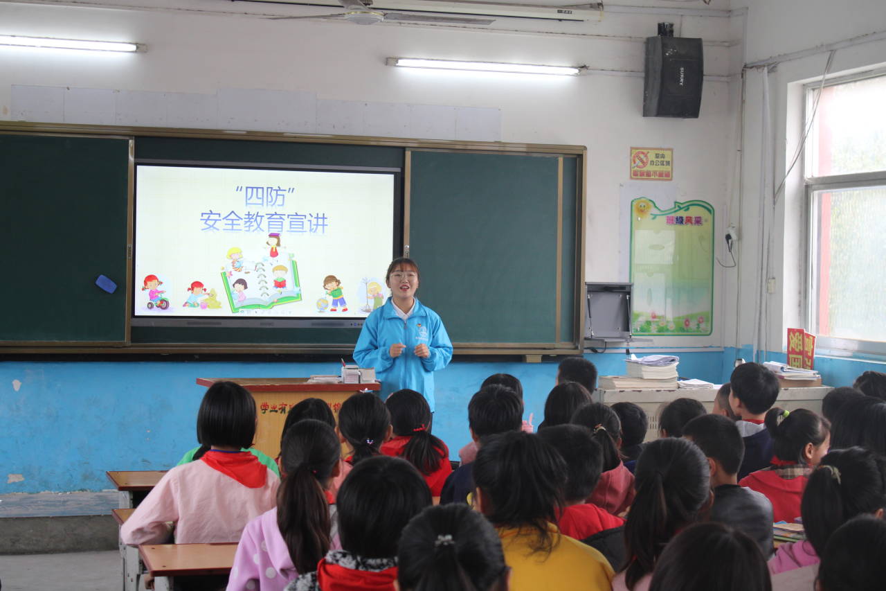 嘹亮的《中国少年先锋队队歌》结束后,高店中心学校少先队员代表朱星宇、我校学生代表郭玉琛两位同学分别发表了一番“国旗下的演讲”,抒发出了少年、青年真挚的爱党、爱国、爱家情怀;我校学生宣讲实践团成员的朗诵节目《青春中国》,紧紧围绕少年强则国强,青年兴则国家兴这一主题;高店乡中心校副校长发表讲话,感谢了我校师生一行人的到来,表示本次活动让孩子们在体验仪式感的同时,更让孩子们受到了爱国主义教育,感受到了深切的关爱和呵护。本次主题团日活动同时在室内进行了防未成年溺水、防信教、防网络沉迷、防性侵“四防”教育课活动。