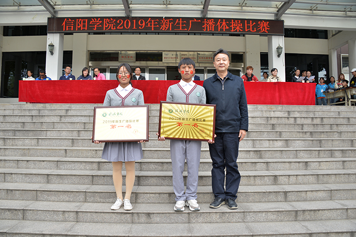 为进一步丰富广大学生的校园文化生活,促进新同学加强体育运动,推进我校体育健身活动蓬勃开展,11月6日中午,2019年新生广播体操比赛在理工楼广场举行。副校长王志华出席指导。有关部门负责人周曙光、郑山峰及公体部、宣传部、招生就业处、学生处、团委相关教师共同担任比赛评委。