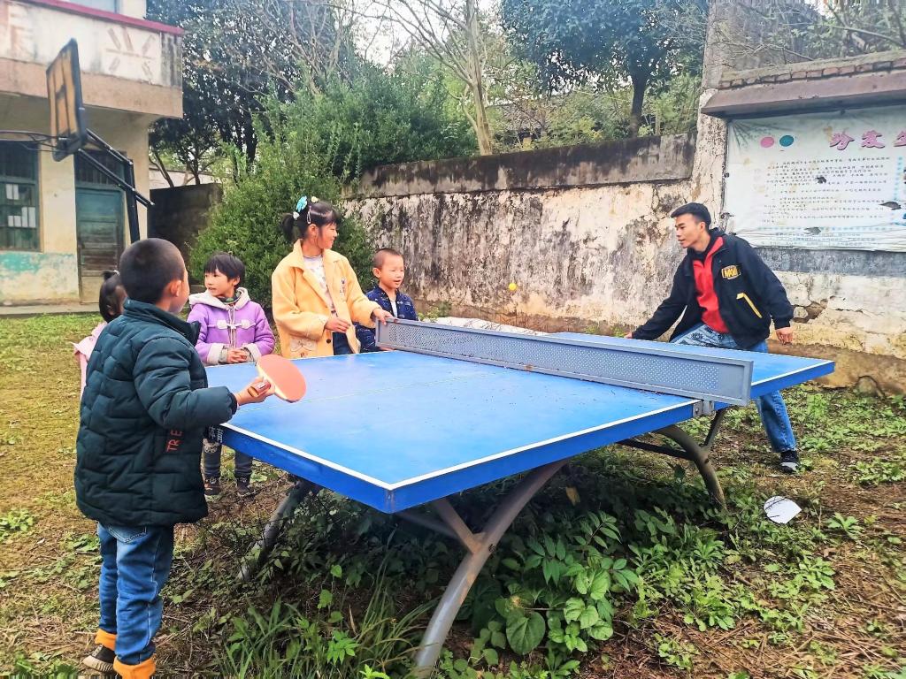对于志愿者的到来,小朋友们十分开心。乒乓球教学课上,志愿者手把手教小朋友发球,欢声笑语荡漾在操场上方。美术课上,志愿者教小朋友绘画小动物,小朋友们学的不亦乐乎。广播体操教学课上,每个小朋友都十分认真的跟着志愿者老师学动作。午时,小朋友们吃着志愿者们从学校带来的爱心午餐,幸福和满足洋溢在他们脸上。
