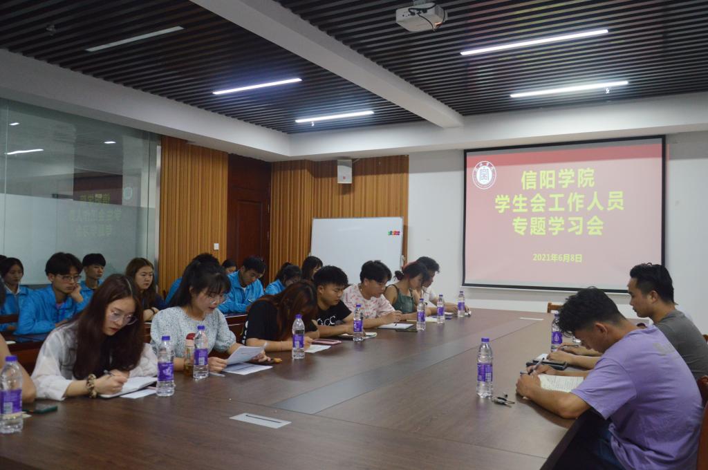 6月8日下午,校团委于综合楼715会议室召开了学生会工作人员专题学习会,校学生会全体成员参与本次会议,校团委老师张翰文主持会议。