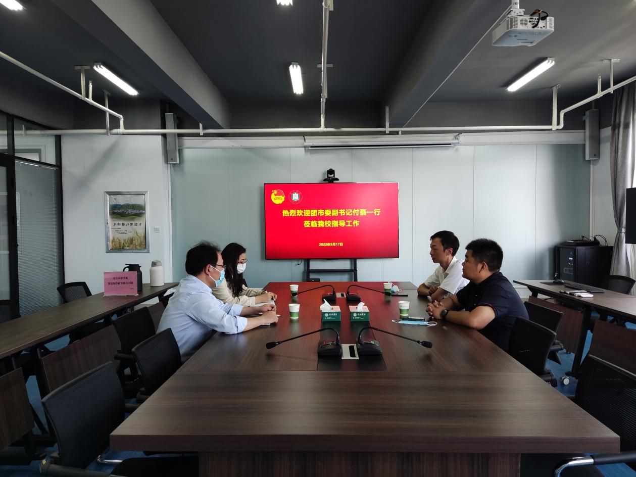 5月17日下午,团信阳市委副书记付磊,团信阳市委青年发展部部长阮飞一行莅临我校调研指导工作。调研座谈会在综合楼第五会议室召开。校团委书记郑山峰,招生就业处处长柳琳参加了会议。