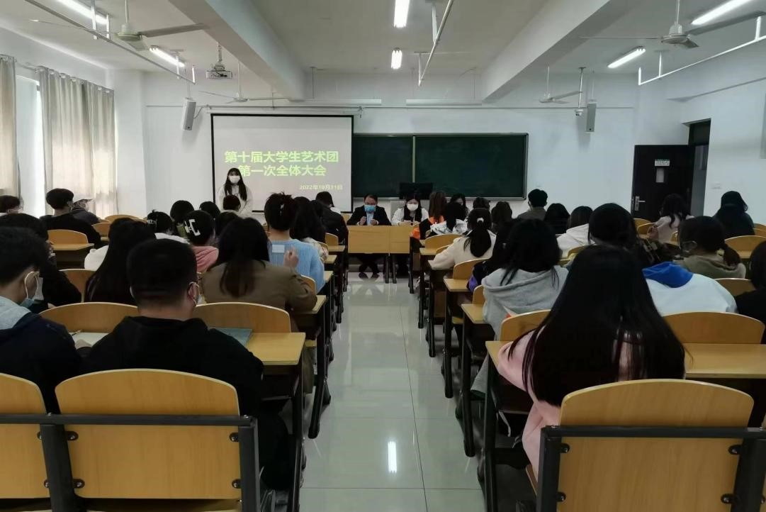 10月31日中午,第十届大学生艺术团第一次全体会议在综合楼503教室召开。校团委书记郑山峰出席会议。艺术团学生负责人张哲凡、董思雨、王晓青和全体成员共同参加了会议。