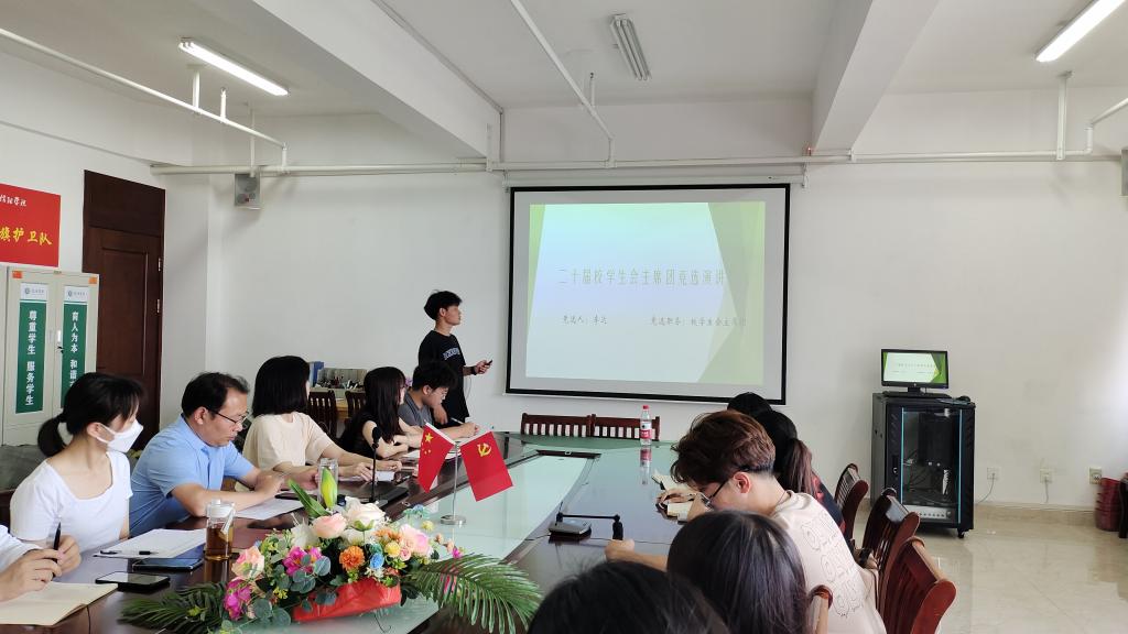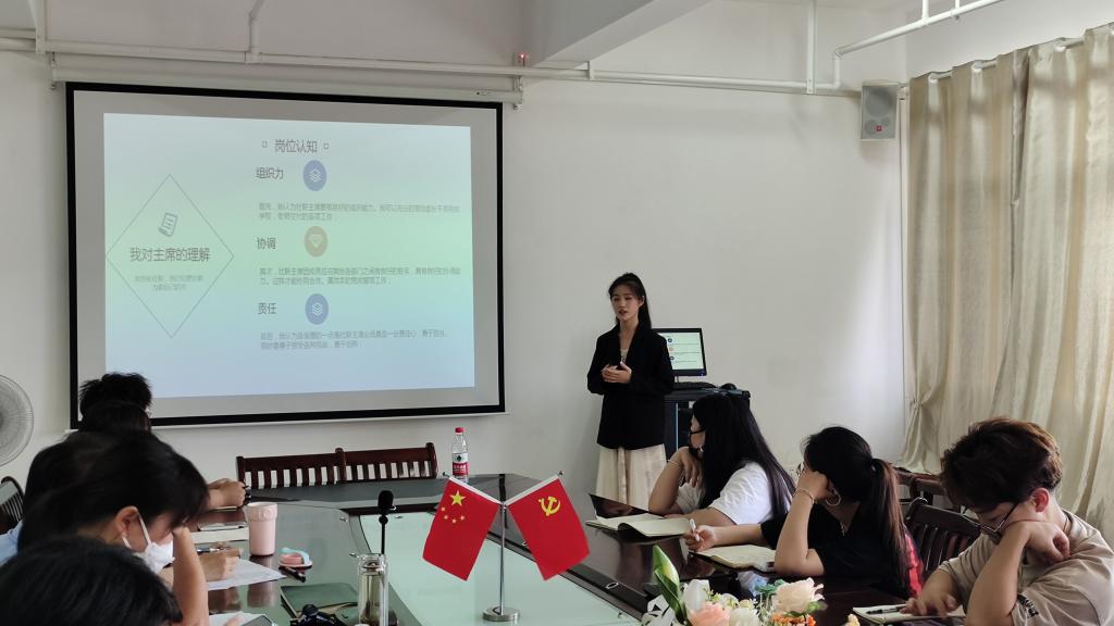 竞聘会上,学生们依次进行发言。他们向评委老师做了自我介绍,结合自己现任职务,简要分享了以往工作经历经验、个人优势优长,阐述了个人工作设想及工作建议。