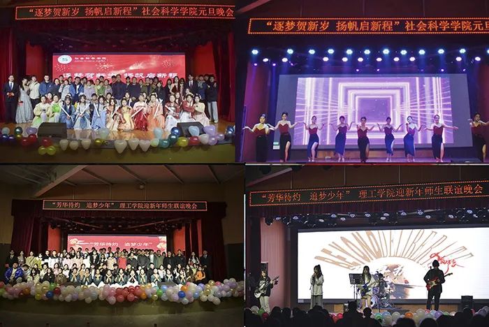 进入本月下旬以来,学校各学院纷纷结合自身专业特点和师生情趣,举办了形式多样、精彩纷呈的元旦晚会。12月26日晚,校长王北生、副校长王志华等参加教育学院元旦晚会,与师生共同分享了精彩的文艺节目。各场晚会充分展现了我校师生蓬勃向上、拼搏进取的精神风貌,表达了大家对新年的美好祝愿。新的一年,信院师生将在理事会和党委、行政的领导下,深入学习贯彻习近平新时代中国特色社会主义思想和党的二十大精神,自信自强、守正创新、锐意进取,奋力谱写学校事业高质量发展新篇章。