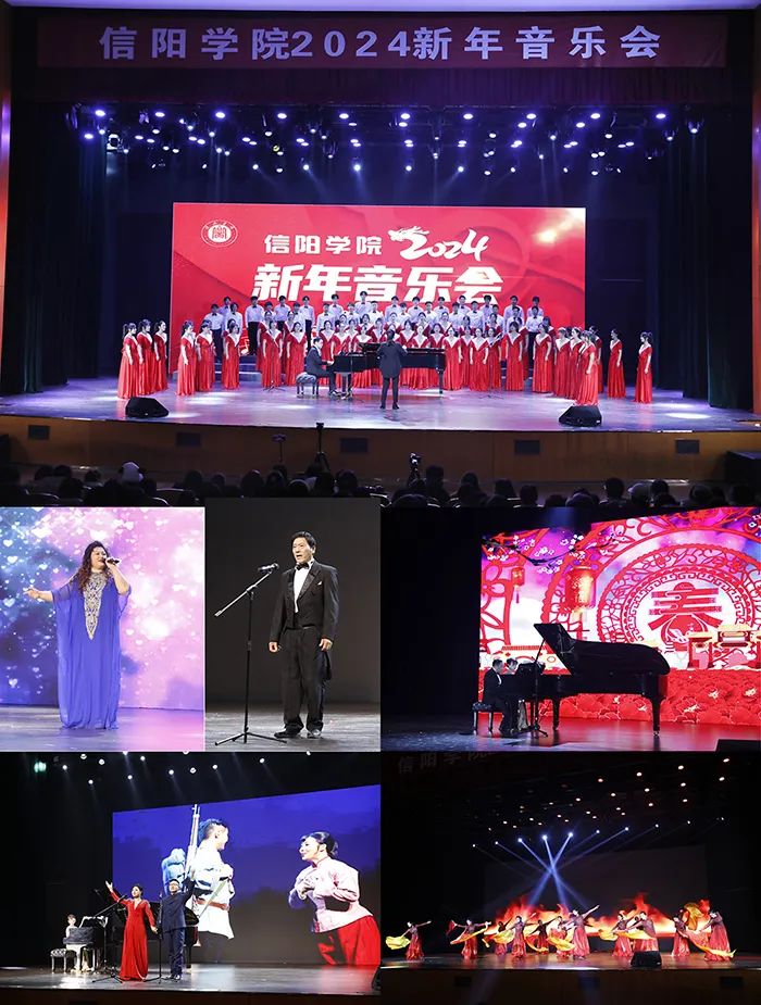 梅花香,冬蕴藏,初心热,新气象。12月28日晚,信阳学院2024新年音乐会在音乐厅举行,隆重奏响新年序曲。学校理事长高云、党委书记褚金海、战略发展咨询委员会主任熊健民、党委专职副书记施昌海、副校长王志华等在校校领导出席晚会。有关院、部负责人和师生代表共同观看了音乐会。众多师生通过网络直播观看了晚会,形成了浓厚的校园文化氛围。