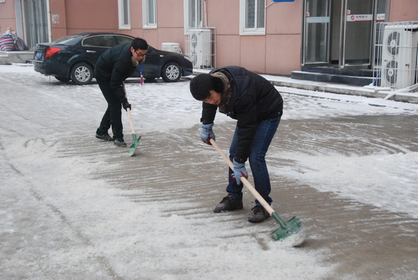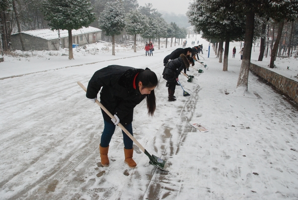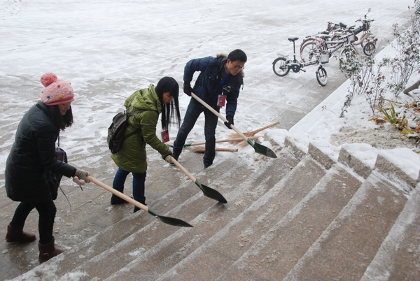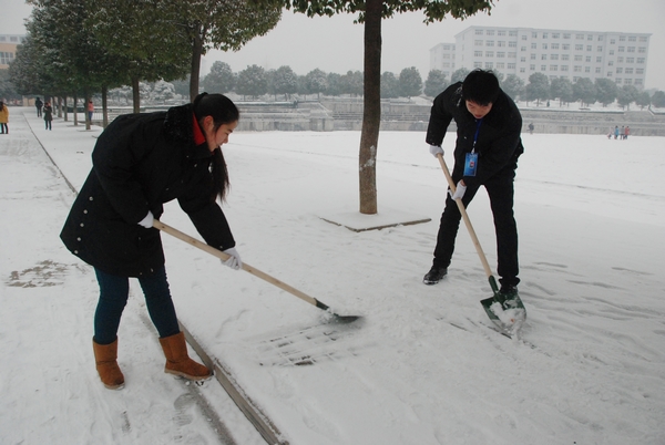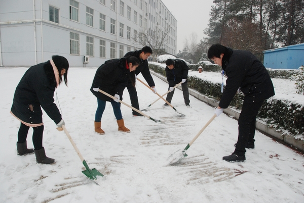 自12月25日晚至今,信阳市普降大雪。今天清晨以来,我院师生积极行动,冒雪清理道路冰雪,保障师生出行安全。