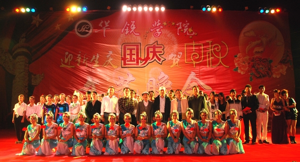 人欢笑,情再续,礼花绽放满天星;颂中秋,贺华诞,载歌载舞庆双节。9月28日晚,我院“迎新生•庆国庆•贺中秋”文艺晚会在体育场举行。团信阳市委书记赵君峰,信阳师范学院团委副书记武志国,我院常务副院长高云、副院长王志华等领导及院办公室主任张柏平,外语系主任罗德喜教授,社会科学系主任陈录生教授,艺术系主任张维教授,土木工程系主任张伯平教授等系、部相关负责同志与2012级全体新生一起欣赏了晚会。