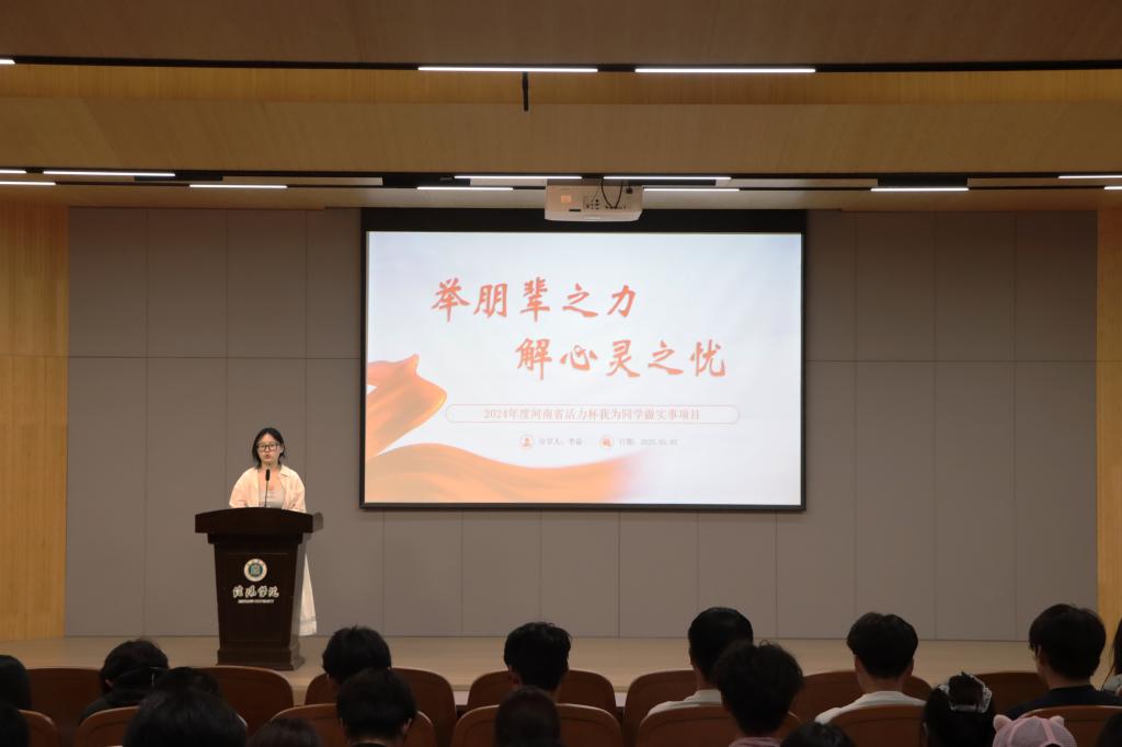 在优秀案例分享会上,2024年度“活力杯”河南高校共青团基层基础工作大赛“我为同学做实事”项目大赛三等奖获奖项目——“举朋辈之力,解心灵之忧”负责人李焱,从项目背景、运行实施、项目成效、未来展望、创新点、构想思路六个方面,全面介绍了项目从构想到落地再到创新发展的过程。她不仅分享了关键节点与策略,还讲述了团队应对困难的经验,为学员提供了实用范例。分享结束后,学员代表围绕项目细节和主题踊跃提问,现场思维碰撞激烈。