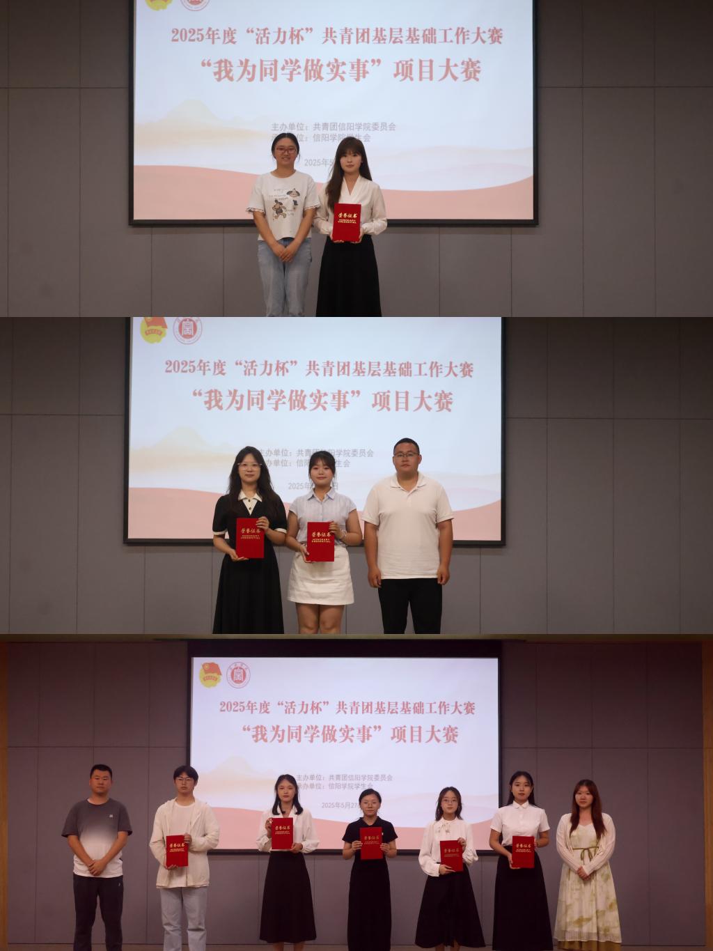 最终,“我为同学做实事”项目大赛中,音乐学院《乐动心弦,音乐无界》项目荣获一等奖;校学生会《青言青语,宣讲赋能》项目、社会科学学院《青心引领,普法先行》项目荣获二等奖;文学院《“心语同行”系列心理健康服务》、数学与统计学院《数绘红途,学伴同行——数桥计划》、教育学院《反诈不打烊,平安筑城墙——守护大学生钱袋子行动》与《春育英才,动绘未来——“育动巅峰”运动训练营》,以及大数据与人工智能学院《计协成长计划——校园服务、编程教学与竞赛指导》五个项目荣获三等奖。