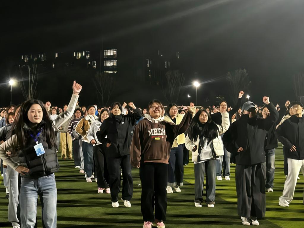 活动现场,工作人员提前到位,分批次引导同学们有序站位并分发荧光手环等趣味物品,全程保障着活动的有序开展。动感轻快的音乐一经响起,全场氛围瞬间被点燃。无论是节奏分明的律动舞蹈,还是轻松欢快的集体共舞,每一个身影都朝气蓬勃,每一张笑脸都洋溢着快乐。大家在欢声笑语中舞动,在轻松的氛围里锻炼,让运动不再是枯燥的坚持,而是变成了有趣的校园社交与休闲方式。