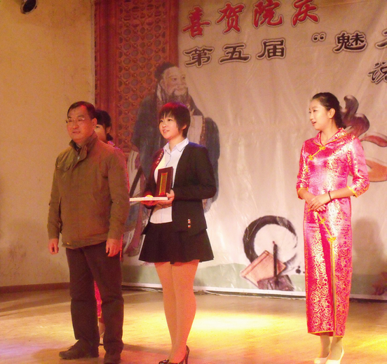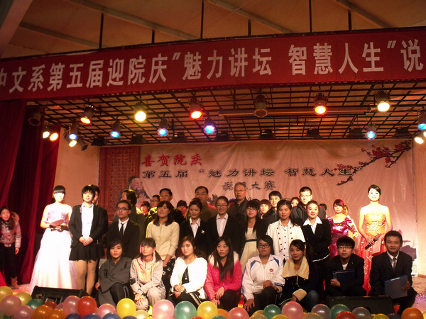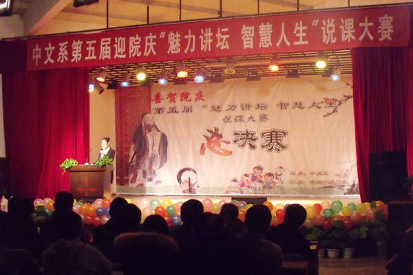 11月27日晚,中文系在大学生活动中心举办了第五届“魅力讲坛•智慧人生”说课比赛。副院长毛海涛教授,社会科学系主任陈录生教授,中文系主任傅瑛教授,督导督察室主任、教学部副部长于祥杰教授,学工部副部长张富庄,该系各秘书、干事及来自兄弟院系的6位评委老师和600多名学生一同观看了比赛。