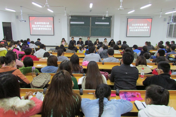 10月30日晚,社会科学系第六届团总支学生会全会暨秋冬季安全教育管理动员会在教五楼108教室召开。系主任陈录生教授,各秘书、干事、辅导员及200余名学生干部参加会议。