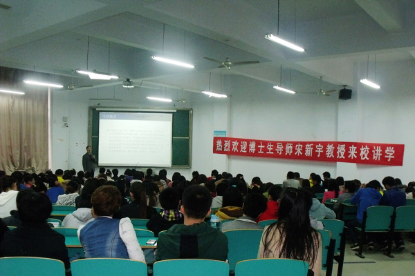 10月30日下午,应数学与计算机科学系特邀,中国林业科学院研究员、博士生导师、信阳师范学院数学研究所所长宋新宇教授来校做了以《数学在生命科学中的若干应用》为题的学术讲座。我院数学与计算机科学系系主任郝涌教授、督导督察室副主任张富良、数学专业教师及200余名学生聆听了讲座。