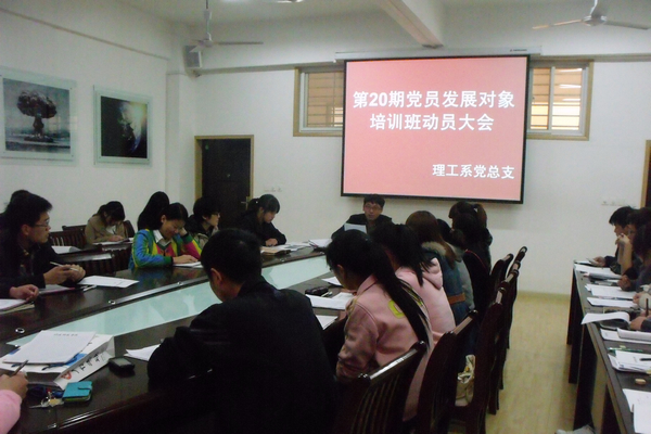 10月28日,理工系党总支召开了第20期党员发展对象培训班动员大会。系党总支副书记陈俊,有关教师及本期党员发展对象参加了会议。会上,陈俊给广大学生党员发展对象提出了具体要求,强调材料的填写的重要性,并进一步告诫大家党课的纪律性及发展过程的严肃性。