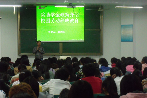 他向新生介绍了国家奖学金、励志奖学金、国家助学金及学院奖学金的评选条件和评选程序,就该系校园卫生、文明工作,寝室安全、卫生、文明工作等展开讲解,并对他们的学习生活提出了建议。