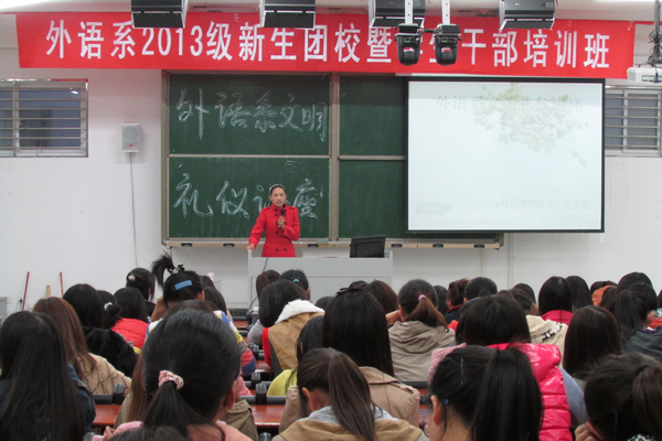 10月30日晚,外语系2013级新生团校暨学生干部培训班开班典礼在图书馆102教室举行。