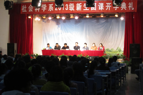 10月22日晚,社会科学系2013级新生团校开学典礼在大学生活动中心举行。社会科学系主任陈录生教授、院长办公室副主任张俊忠、学工部副部长张富庄及该系全体专兼职辅导员参加了此次活动。