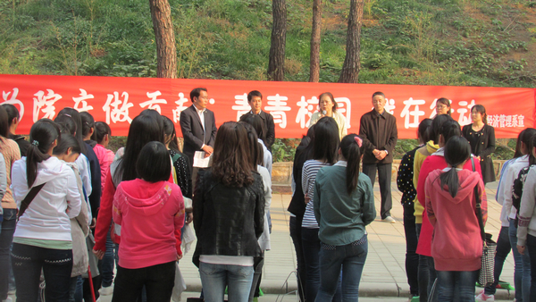 10月28日下午,经济管理系在校园卫生责任区开展“我为院庆做贡献—青青校园、我在行动”现场签名仪式。院党委书记张莉教授,系主任孟广章教授,学工部副部长张富庄老师,团委副书记胡秀云老师出席签名仪式。