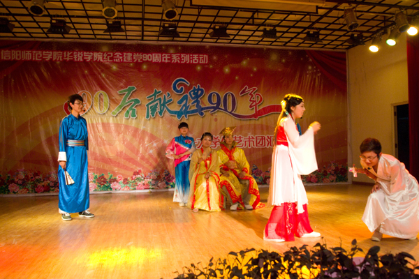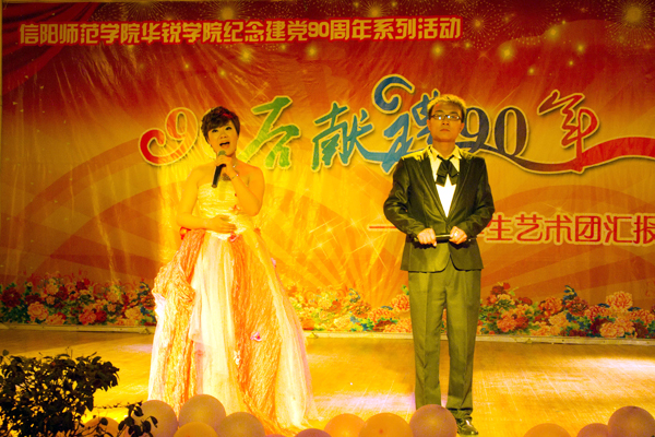 5月26日晚,我院纪念建党90周年系列活动之“90后献礼90年”——大学生艺术团汇报演出在大学生活动中心成功举办。院党委书记祝军,党委委员、副院长王忠阁,党委委员、学工部副部长、团委书记李明,有关部门和系党总支副书记、行政秘书、团总支书记、辅导员老师和600余名学生观看了晚会。